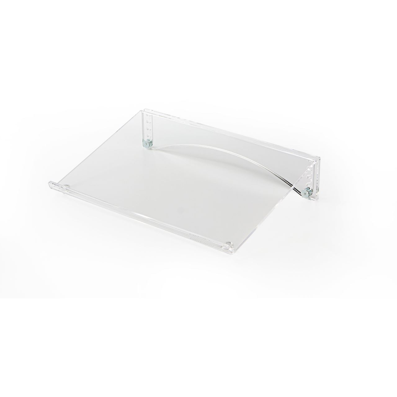 Der FlexDoc Cristal Clear ist ein Dokumentenhalter, der in fünf Stufen höhenverstellbar ist. Mit einer kompakten Fläche von 384 mm x 260 mm eignet sich der FlexDoc Cristal Clear auch für Ihren Home-Office-Arbeitsplatz, kann aber auch im Büro eingesetzt werden. Arbeiten Sie in einer Linie und platzieren Sie diesen ergonomischen Dokumentenhalter direkt vor sich zwischen Bildschirm und Tastatur, und legen Sie Ihre Dokumente oder mobilen Geräte darauf ab. Mit diesem Dokumentenhalter können Sie beim Lesen Ihrer Dokumente eine gesunde Körperhaltung einnehmen, was Ihr Wohlbefinden und Ihre Produktivität bei der Arbeit steigert.