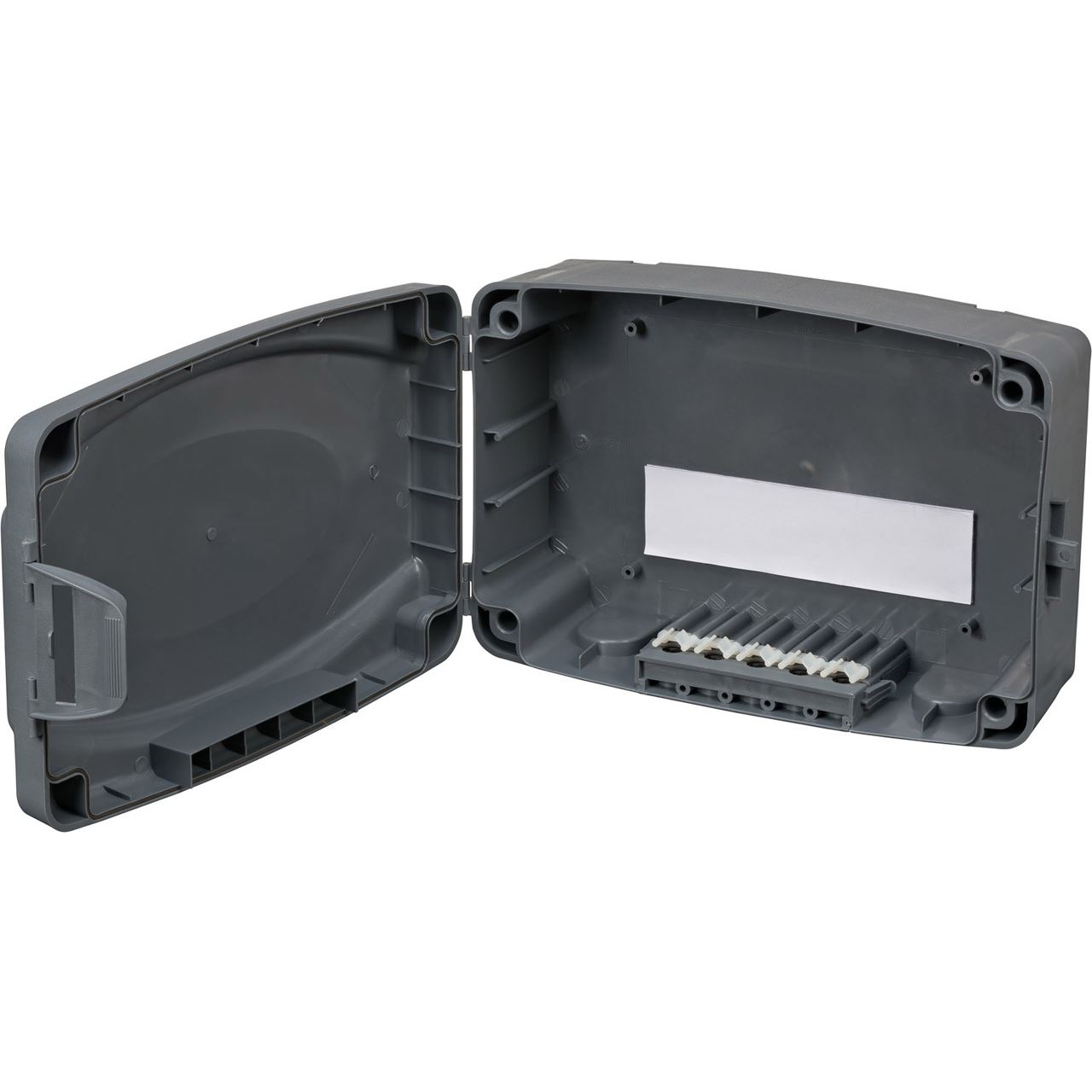 Die wetterfeste Box sorgt dank der IP54 Schutzklasse für einen sicheren Anschluss Ihrer elektronischen Geräte wie Weihnachtsbeleuchtung, dekoratives Gartenlicht, Pumpen/UV-Filter sowie Beleuchtung von Teichanlagen und ist für sämtliche Kabelsteckverbindungen im Außenbereich geeignet. Die Wetterschutzbox kann dank der Ösen zusätzlich an der Wand befestigt werden. Außerdem können verschiedene Kabel einfach durch entsprechende Kabelein- und ausgänge hindurchgeführt werden. Die wettergeschützte Box für den Außenbereich überzeugt zusätzlich durch folgende Eigenschaften: