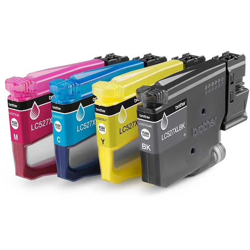 Brother LC527XLVAL. Farbiger Tintentyp: Tinte auf Pigmentbasis, Schwarzer Tintentyp: Tinte auf Pigmentbasis, Tintenpatronenkapazität: Hohe (XL-) Ausbeute, Versorgungstyp: Value pack, Seitenergebnis Farbtinte: 2000 Seiten, Druckfarben: Schwarz, Cyan, Magenta, Gelb, Menge pro Packung: 4 Stück(e), Seitenergebnis schwarze Tinte: 3000 Seiten