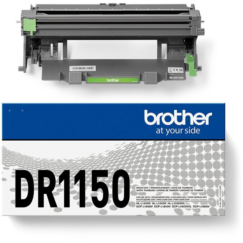 Brother DR-1150. Typ: Original, Markenkompatibilität: Brother, Kompatibilität: DCP-L1640W, DCP-L1642W, DCP-L1660W, HL-L1240W, HL-L1242W. Breite: 65 mm, Tiefe: 120 mm, Höhe: 280 mm. Verpackungsbreite: 114 mm, Verpackungstiefe: 174 mm, Verpackungshöhe: 334 mm