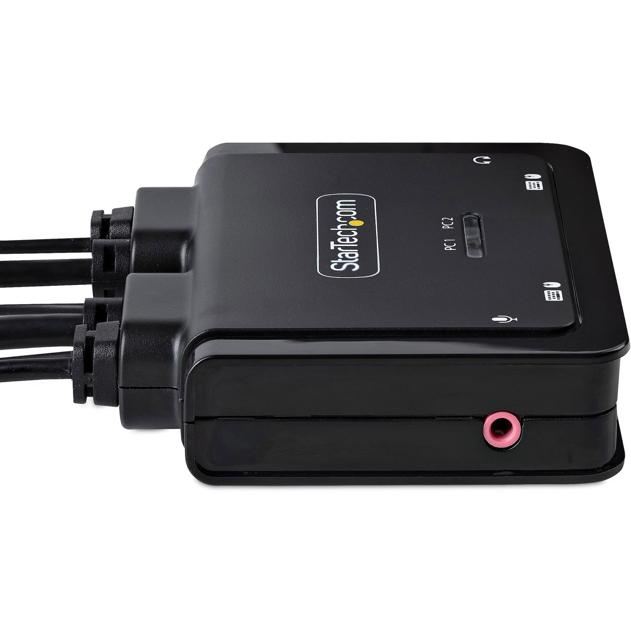 Der KVM-Switch bietet zwei Optionen zum Umschalten zwischen Hosts - eine Fernbedienungstaste oder Hotkey-Befehle, mit der herunterladbaren Software. Die Fernbedienungstaste hat ein 1,5 m Kabel für eine optimale Platzierung. Unabhängiges Umschalten von Audio kann durch die Software erreicht werden, indem Tastaturkürzel (d.h. Hotkeys) genutzt werden, um ununterbrochenes Audio beim Umschalten zwischen Host-Geräten zu gewährleisten.