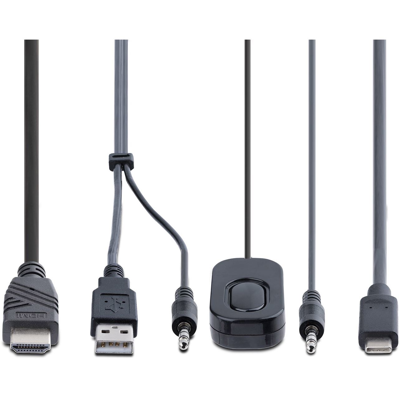 Der KVM-Switch wird über den USB Bus mit Strom versorgt und verfügt über integrierte HDMI, USB-A, USB-C und 3,5mm Audio Eingangs-/Ausgangskabel. Dies gewährleistet Kompatibilität und Performance zwischen dem KVM-Switch, Bildschirmen und Peripheriegeräten - ohne die Notwendigkeit, die für diese Verbindungen erforderlichen Kabel auswählen und kaufen zu müssen.