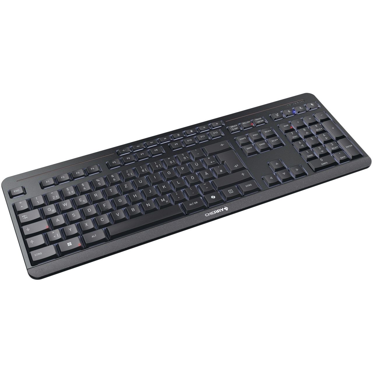 CHERRY Stream desktop ultimate. Tastatur Formfaktor: Volle Größe (100%). Tastatur-Stil: Gerade. Übertragungstechnik: Verkabelt & Kabellos, Geräteschnittstelle: USB + RF Wireless + Bluetooth, Tastatur-Switch: Scherenschalter, Tastaturaufbau: QWERTZ. Typ der Hintergrundbeleuchtung: LED. Empfohlene Nutzung: Heimbüro. Produktfarbe: Schwarz. Maus enthalten