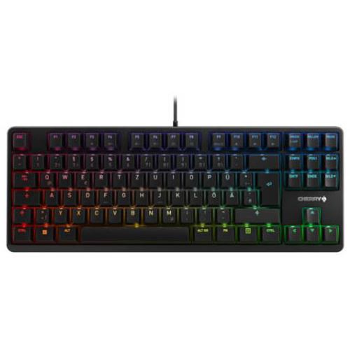 CHERRY G80-3000N RGB TKL. Übertragungstechnik: Kabelgebunden, Geräteschnittstelle: USB, Tastatur-Switch: Mechanischer Switch, Tastaturaufbau: QWERTY, Tastatur - Tastenanzahl: 87. Typ der Hintergrundbeleuchtung: RGB-LED. Kabellänge: 1,8 m. Empfohlene Nutzung: Universal. Produktfarbe: Schwarz