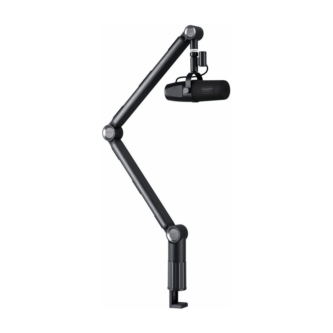 CHERRY NGALE Boom Arm. Produkttyp: Boom Mikrofonständer, Sockel: Schreibtisch-Montagebasis, Produktfarbe: Schwarz. Breite: 173 mm, Tiefe: 55 mm, Höhe (max): 100,4 cm. Menge pro Packung: 1 Stück(e)