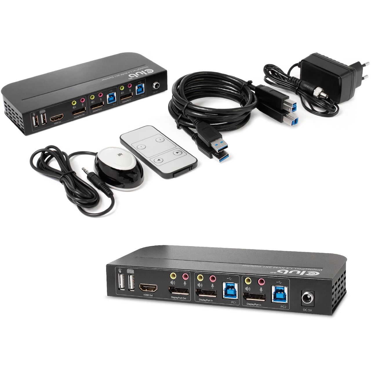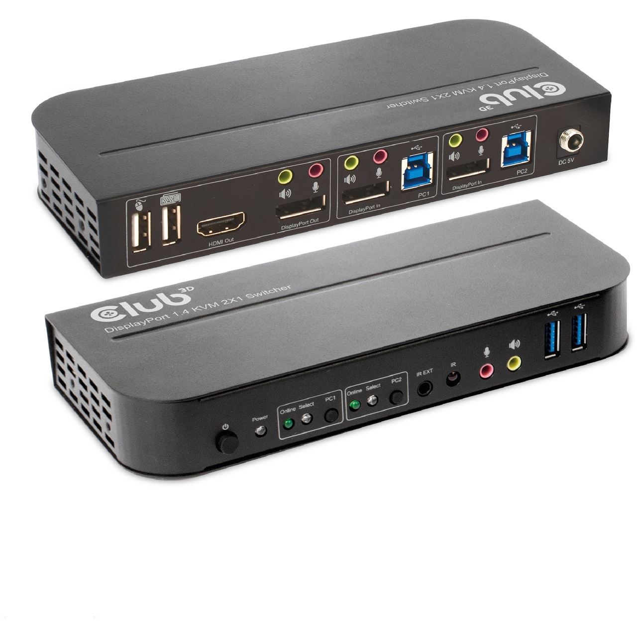 CLUB3D DisplayPort/HDMI KVM Switch For Dual DisplayPort 4K 60Hz. Tastatur Porttyp: USB, Maus-Porttyp: USB, Video Porttyp: HDMI/DisplayPort. HD-Typ: 4K Ultra HD, Maximale Auflösung: 4096 x 2160 Pixel, Videobandbreite: 60 Hz. Produktfarbe: Schwarz, Gehäusematerial: Metall. Energiequelle: Gleichstrom, Eingangsspannung: 5 V, Stromverbrauch (Standardbetrieb): 12 W. Breite: 178 mm, Tiefe: 75 mm, Höhe: 26 mm