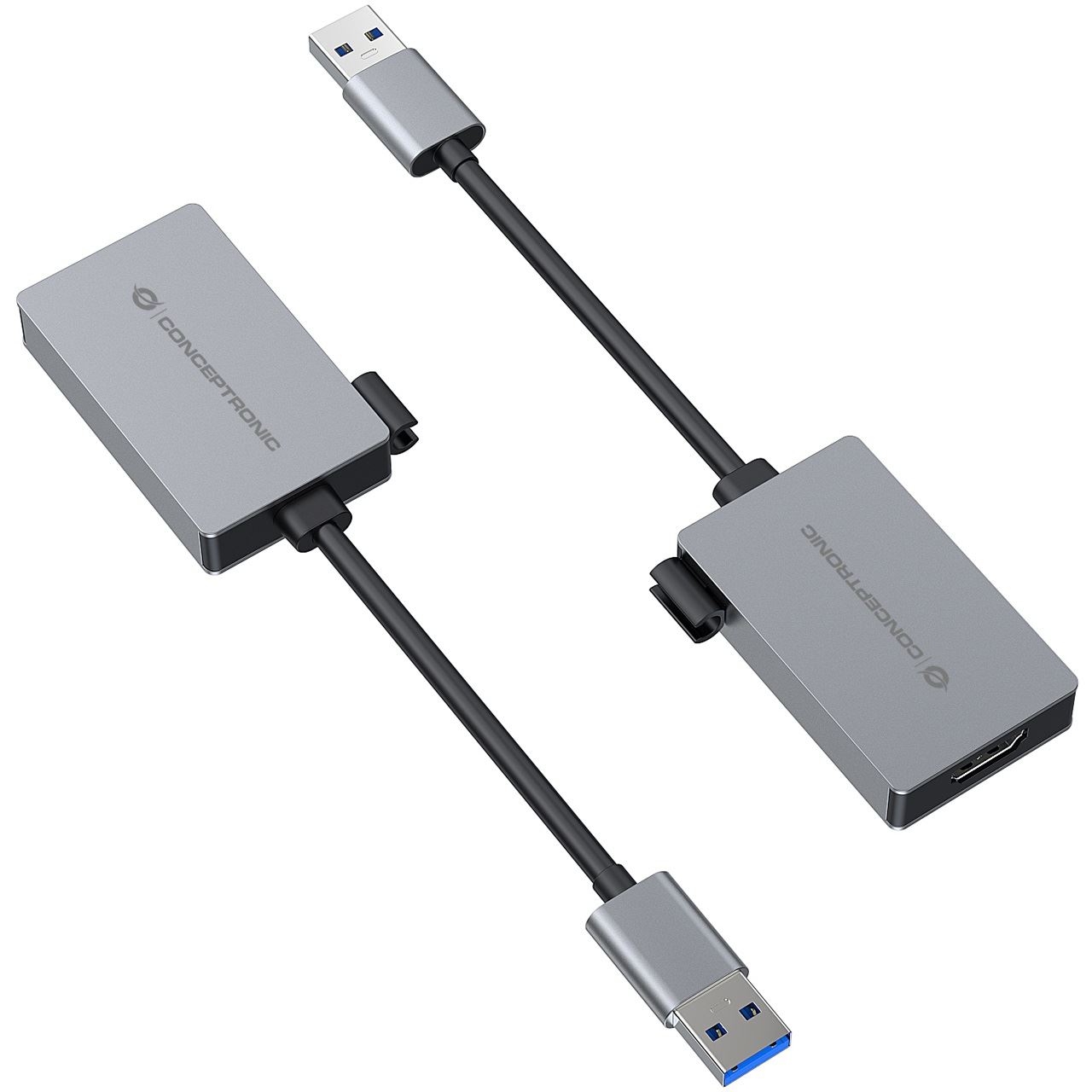 Conceptronic ABBY22G USB-zu-HDMI-1.4-Adapter, 1080P 60Hz, 1080P 60Hz. USB-Version: 3.2 Gen 1 (3.1 Gen 1), USB-Stecker: USB Typ-A, USB-Anschluss Geschlecht: Männlich. Produktfarbe: Grau, Gehäusematerial: Aluminium. Unterstützt Windows-Betriebssysteme: Windows 10, Windows 10 Education, Windows 10 Education x64, Windows 10 Enterprise, Windows 10..., Unterstützt Mac-Betriebssysteme: Mac OS X 10.10 Yosemite, Mac OS X 10.11 El Capitan, Mac OS X 10.12 Sierra, Mac OS X 10.13 High..., Unterstützung anderer Betriebsysteme: Android. Breite: 57,6 mm, Tiefe: 35 mm, Höhe: 11 mm. Verpackungsart: Box, Verpackungsbreite: 148 mm, Verpackungstiefe: 23 mm