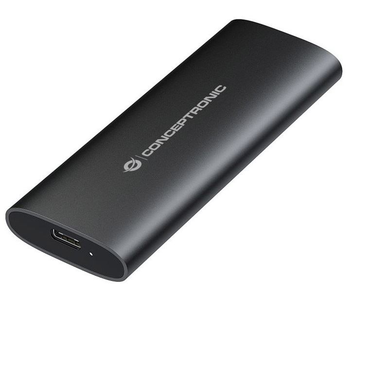 Conceptronic StreamVault DANTE04B. Produkttyp: SSD-Gehäuse. Anzahl der unterstützten Speicherlaufwerke: 1, Größe des Speicherlaufwerks: M.2, Unterstützte Speicherlaufwerk-Schnittstellen: M.2. Datenübertragungsrate: 10 Gbit/s. Produktfarbe: Schwarz