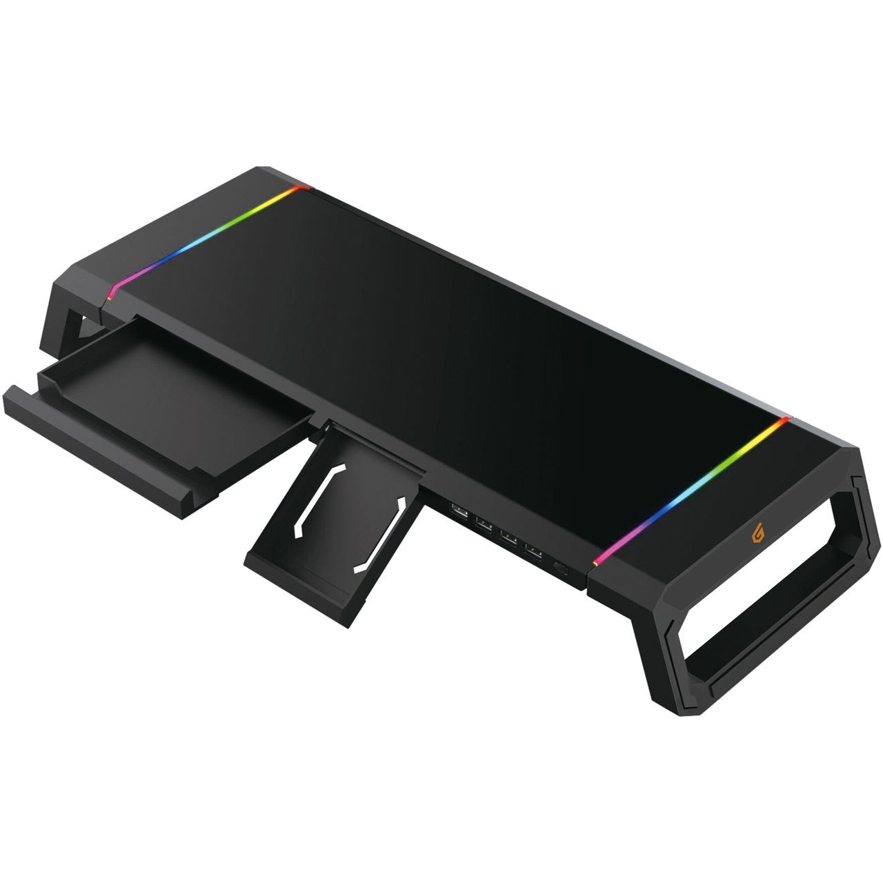 Der Gaming-Monitorständer THORNE ist Dein intelligenter Tisch-Organizer, der für Ordnung auf Deinem Schreibtisch sorgt. Einstellbare RGB-Farbeffekte erzeugen eine beeindruckende Gaming-Atmosphäre. Anstatt Deinen Monitor direkt auf den Tisch zu stellen, wird er durch diesen hochwertigen Ständer auf eine ergonomisch richtige Augenposition erhöht. Ausserdem erhälst Du zusätzlichen Stauraum unterhalb des Monitors, was Chaos auf dem Tisch entgegenwirkt. Reduziere Augen- und Nackenbeschwerden, während Du in einer aufgeräumten Umgebung effezienter arbeitest oder entspannter spielst.