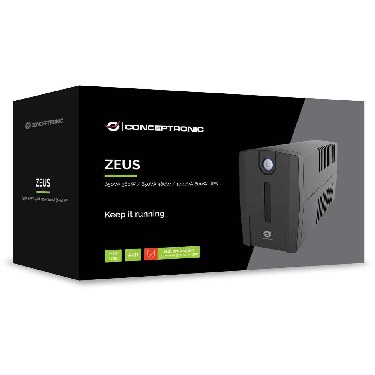 Conceptronic ZEUS USV 850VA 480W 2xUK Sockets HID,USB,RJ45