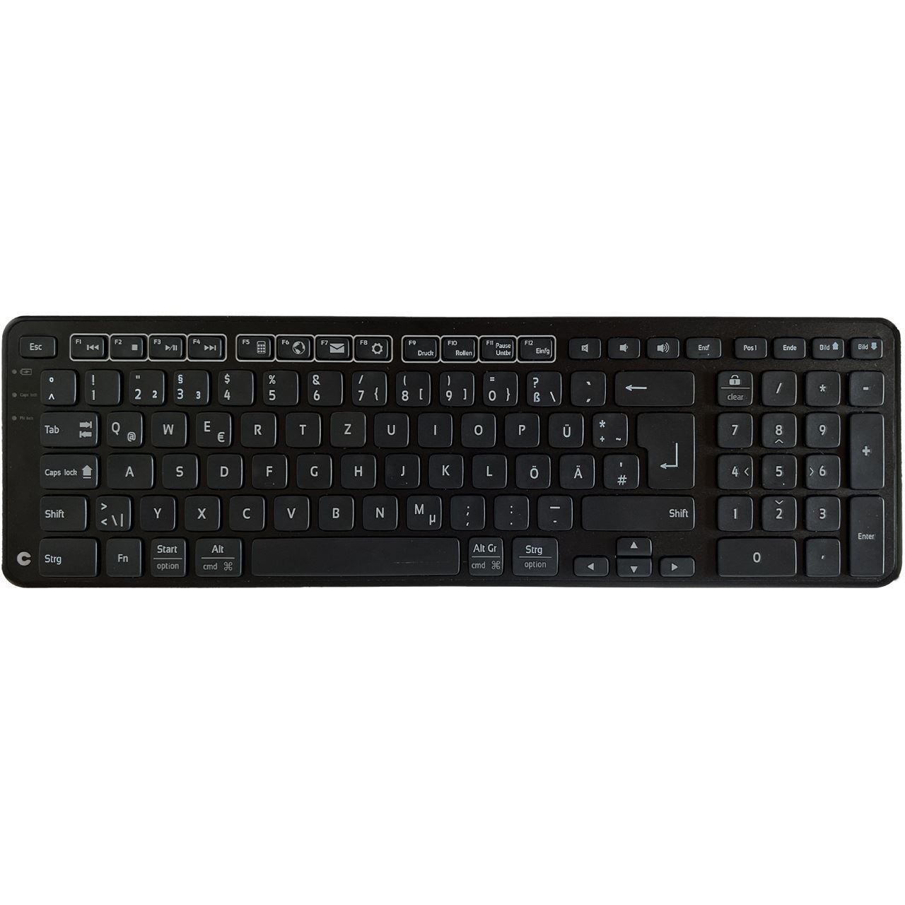 Obwohl das Balance Keyboard BK kompakt ist, verfügt es über alle Funktionen einer normalgroßen Tastatur, einschließlich eines separaten Ziffernblocks, Funktionstasten und Mediensteuerungen. Die Balance Tastatur ist mit PC und Mac kompatibel.