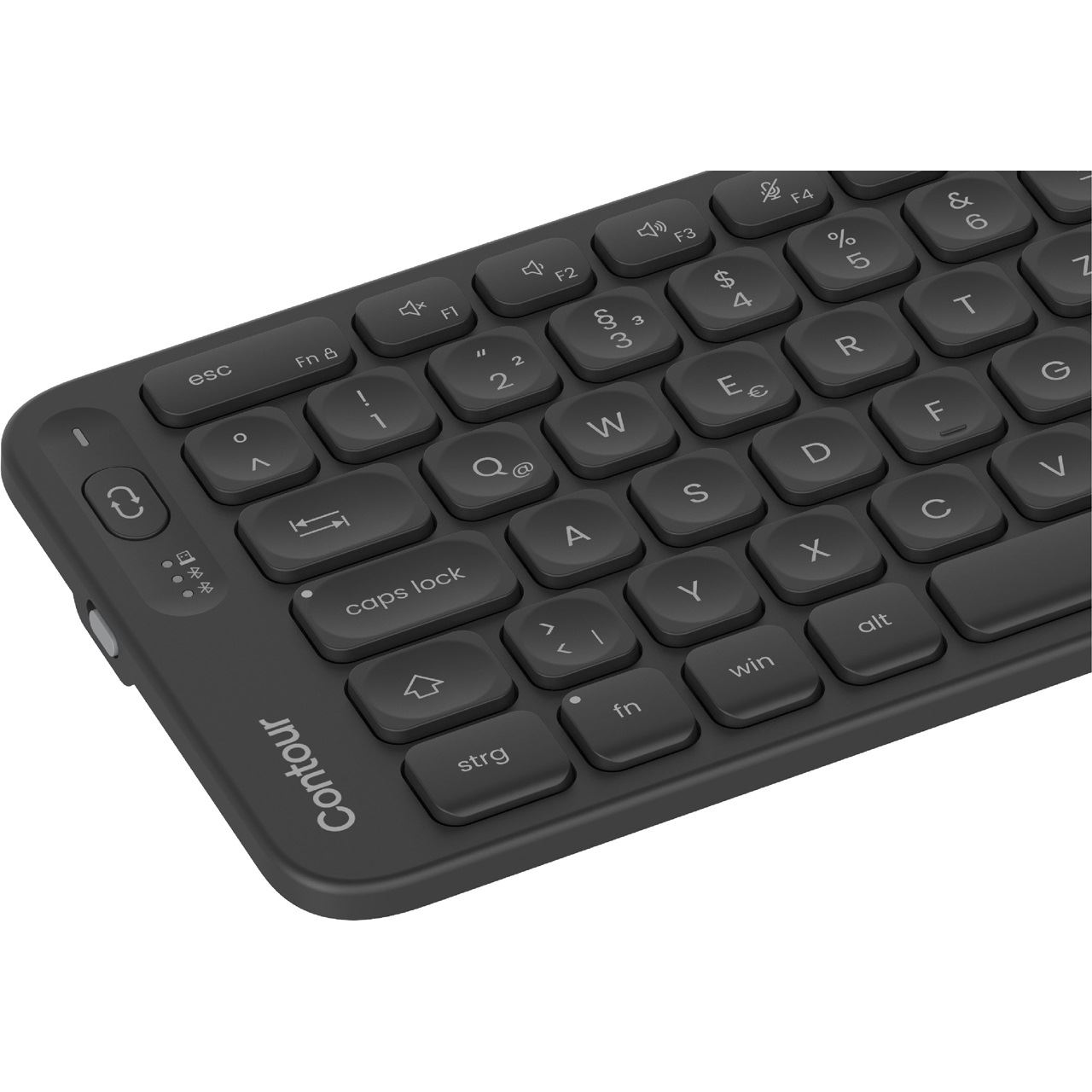 Contour Design Contour Balance Full-Size Keyboard kabellos, deutsches Layout (DE). Tastatur Formfaktor: Volle Größe (100%). Tastatur-Stil: Gerade. Übertragungstechnik: Kabellos, Geräteschnittstelle: RF Wireless + Bluetooth, Tastatur-Switch: Scherenschalter, Tastaturaufbau: QWERTZ, Tastatur - Tastenanzahl: 111, Empfohlene Nutzung: Büro. Produktfarbe: Schwarz