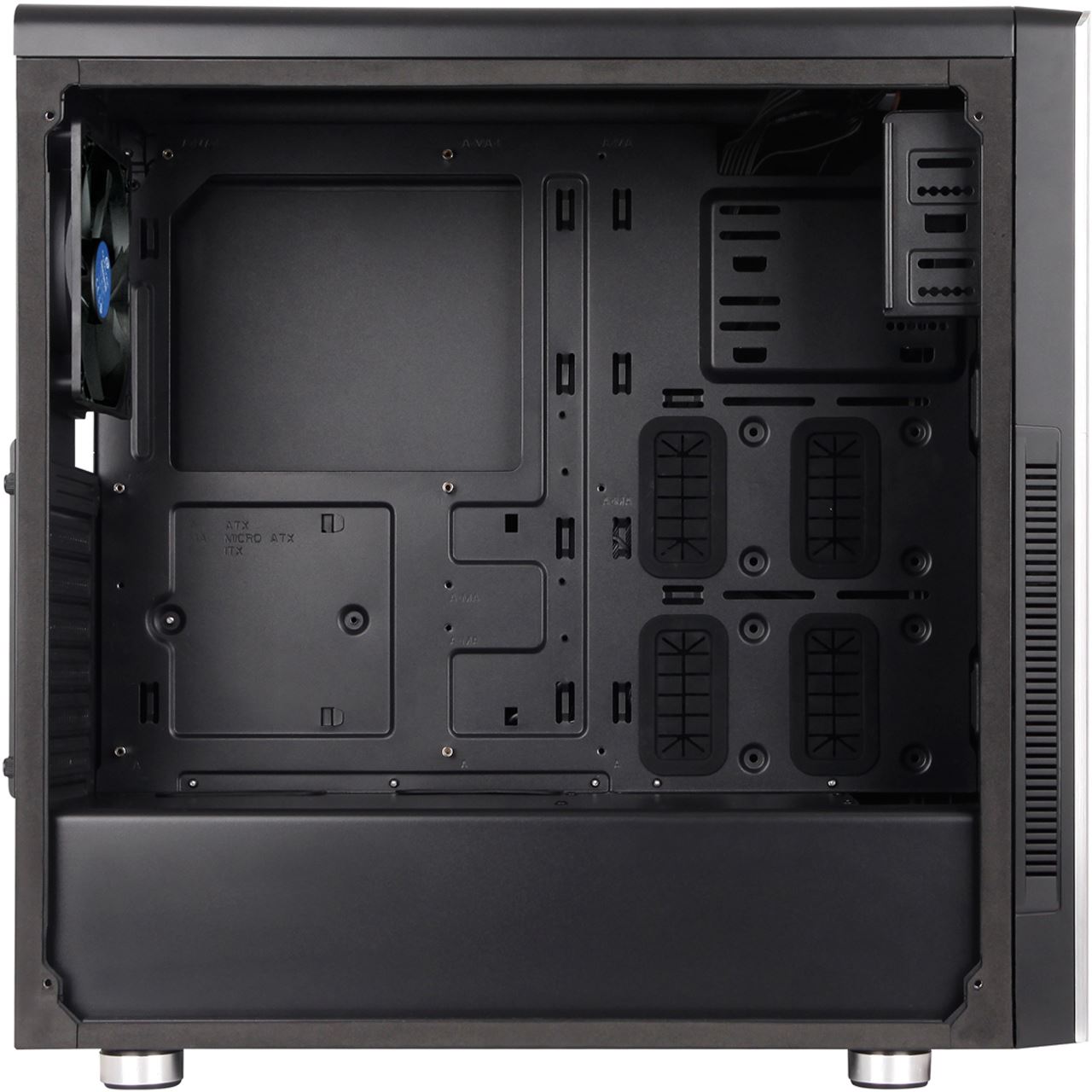 | Besonderheiten: | CPU-Kühler bis max. 163mm, Grafikkarten bis max. 415mm, Kabelmanagement, Lueftersteuerung, Staubfilter, Zweikammer-Design |