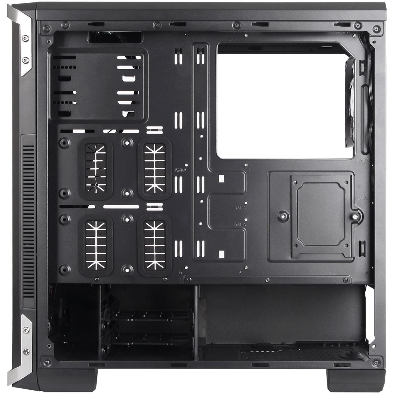 | Besonderheiten: | CPU-Kühler bis max. 163mm, Grafikkarten bis max. 415mm, Kabelmanagement, Lueftersteuerung, Staubfilter, Zweikammer-Design |