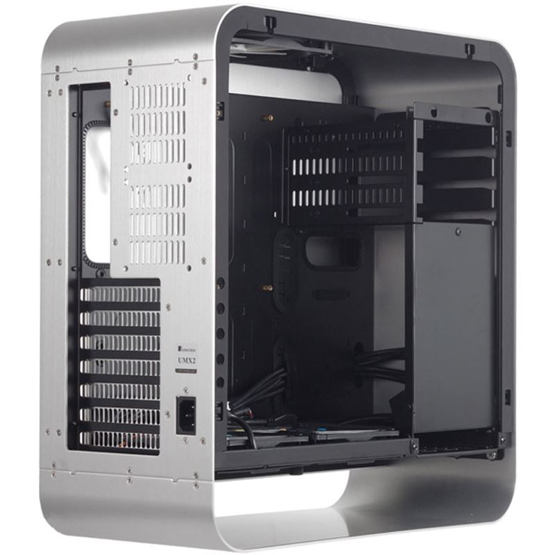 Das Chassis des UMX2 ist aus hochwertigem Stahl gefertigt und verleiht dem Gehäuse maximale Stabilität. Eine 2,5 mm starke Aluminium-Verkleidung umhüllt das Chassis, die Seitenteile sind aus 2,0 mm starkem Aluminium geformt. Das gebürstete Aluminium ist von höchster Güte und verleiht dem UMX2 ein attraktives Aussehen. Die Seitenteile des UMX2 liegen auf einer speziell entwickelten Silikon-Auflage, die eventuell entstehende Vibrationen auffangen.