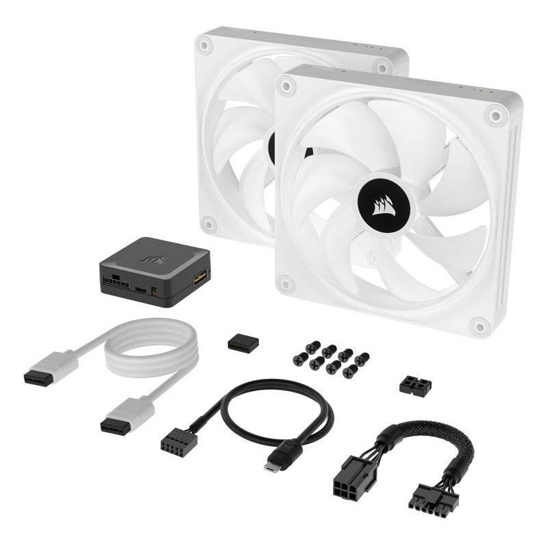 Corsair iCUE LINK QX140 RGB. Typ: Ventilator, Lüfterdurchmesser: 14 cm, Rotationsgeschwindigkeit (min.): 480 RPM, Rotationsgeschwindigkeit (max.): 2000 RPM. Produktfarbe: Weiß