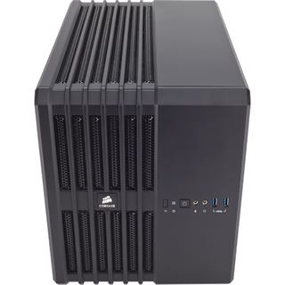 Das Corsair Carbide 240 Air Gehäuse überzeugt mit einem außerordentlichen Formfaktor. In dem ausgefallenen Würfeldesign ist Platz für eine Innenraumstruktur, die für maximalen Luftstrom oder fortschrittliche Wasserkühlkonfigurationen optimiert ist. Dieses kleine Gehäuse nimmt Komponenten voller Größe auf und lässt dennoch geräumigen Installationsplatz übrig. Zudem können Sie das gesamte Innere Ihres Computers durch das seitliche Panoramafenster bewundern.