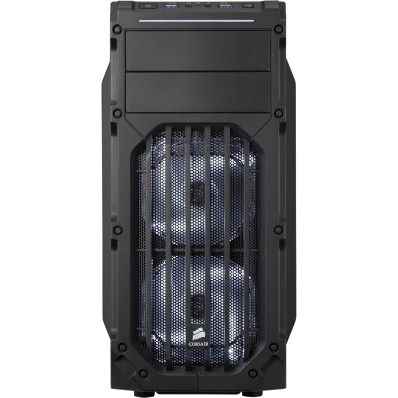 Das Carbide Series SPEC-03 Gehäuse in weiß aus dem Hause Corsair kommt mit einem Sichtfenster einher, womit sein bereits schickes Design noch mal ein Stück, mit Hilfe von genial platzierten LEDs aufgewertet wird. Es bietet extern zwei 5,25“ und intern gleich drei 3,5“ und zwei 2,5“. Seine Lüfter sind perfekt geeignet, um Ihn als Gerüst für ein wahres Meisterwerk unter den Gaming-Maschinen zu nutzen. Ein Kabelführungssystem und ein Staubfilter erlauben es Ihnen stets Ihre Hardware sauber zu halten und allzeit an alle Hardwarekomponenten problemlos heranzukommen und an diesen staubfrei arbeiten zu können. Natürlich bringt es an der Front auch die besten Anschlüsse mit sich, wie z.B. zwei moderne USB 3.0. Festplatten lassen sich bei ihm komplett werkzeuglos installieren.