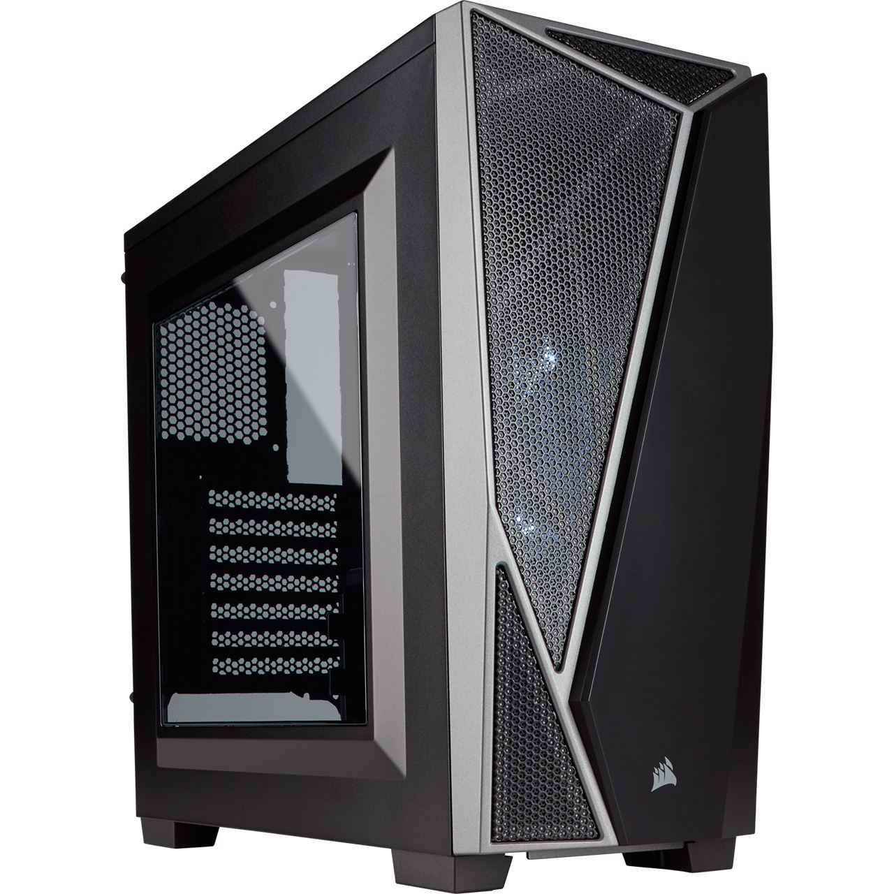 Kantiges Gehäusedesign mit großem, getöntem Seitenfenster