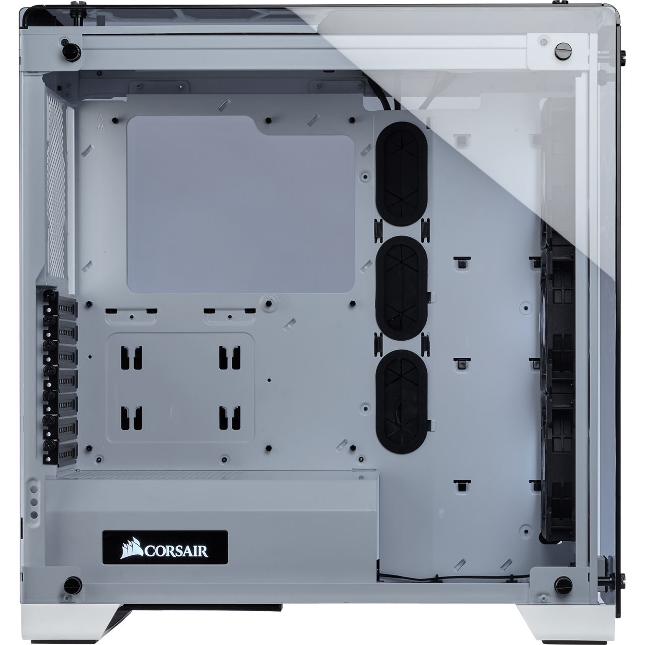 Möglicherweise das schönste Gehäuse, das CORSAIR je entworfen hat Das gesamte Gehäuse besteht aus gehärtetem Glas und gewährt freien Blick auf jede Komponente Ihres Systems.
