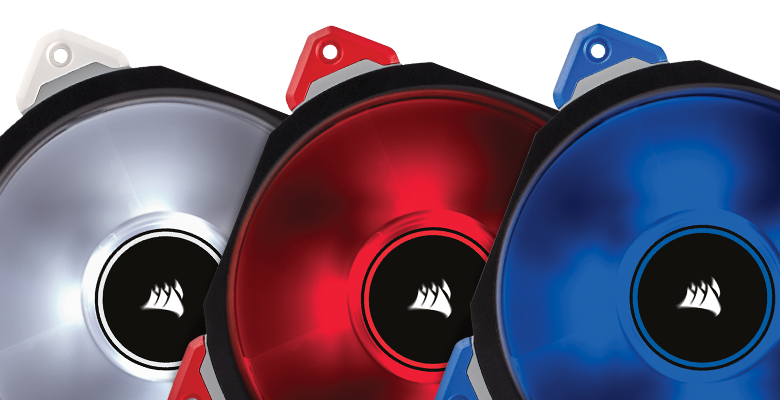 Austauschbare Ecken auf Anti-Vibrations-Gummidämpfern ermöglichen einen leiseren Betrieb bei hohen Geschwindigkeiten und sind in den Farben Rot, Weiß und Blau erhältlich. Die leuchtstarken LEDs in der Mitte des Rotors sorgen für eine lebendige farbige Beleuchtung, über die Sie Ihre Lüfter farblich auf Ihr System abstimmen können.