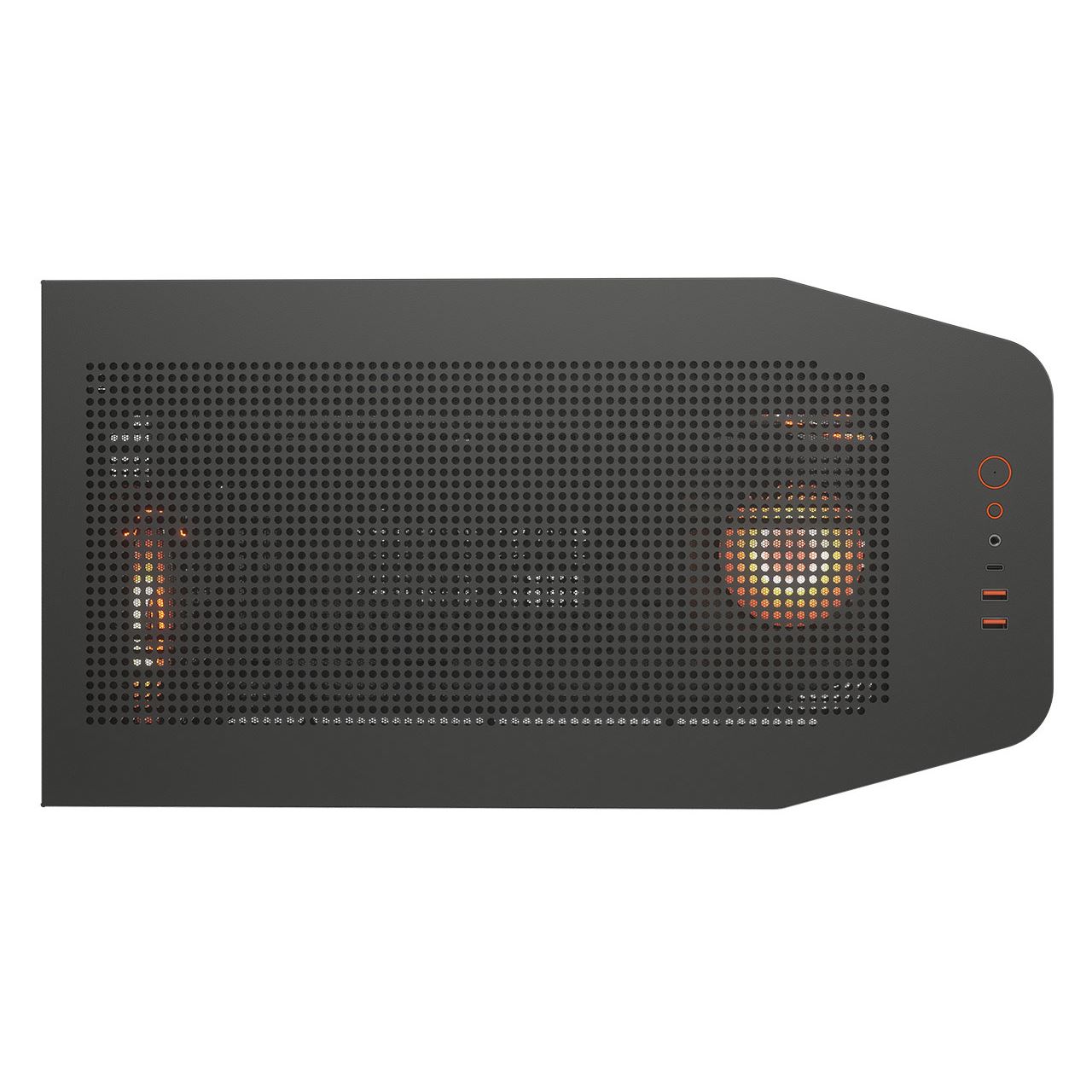 Das polyedrische Design des FV270 bringt Form und Funktion in Einklang und setzt neue Standards für die Luftstromdynamik. Die Platzierung der Kühllüfter auf schrägen Flächen sorgt für einen ununterbrochenen, fokussierten Luftstrom. Die erhöhte Vorderseite bietet eine zusätzliche Belüftungsachse, die den Lufteinlass von unten ermöglicht.