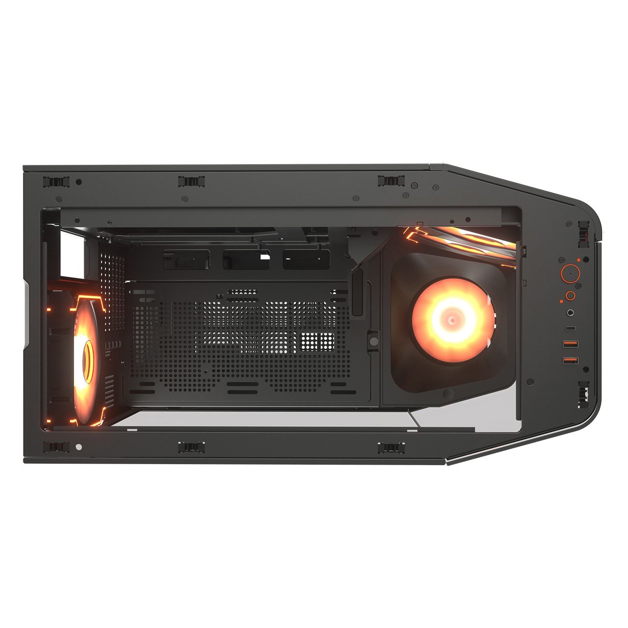 COUGAR Gaming Gehäuse Midi-Tower, FV270 ARGB, Schwarz. Formfaktor: Midi Tower, Typ: PC, Produktfarbe: Schwarz. Installierte Lüfter seitlich: 2x 140 mm, Durchmesser unterstützte Seitenlüfter: 120,140 mm, Installierte Lüfter hinten: 1x 140 mm. Unterstützte Hard-Disk Drive Größen: 2.5,3.5". Breite: 268 mm, Tiefe: 538 mm, Höhe: 520 mm. Verpackungsbreite: 345 mm, Verpackungstiefe: 604 mm, Verpackungshöhe: 595 mm