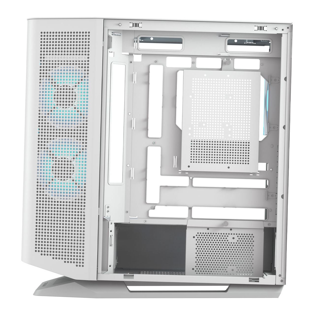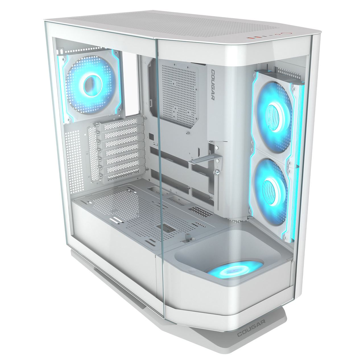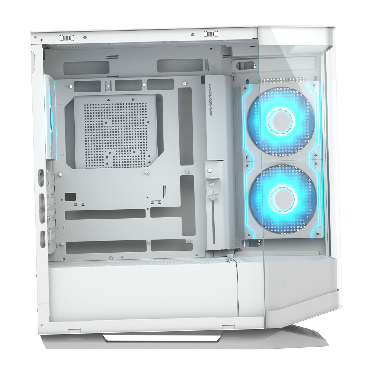 COUGAR Gaming Gehäuse Midi-Tower, FV270 ARGB, Weiß. Formfaktor: Midi Tower, Typ: PC, Produktfarbe: Weiß. Installierte Lüfter seitlich: 2x 140 mm, Durchmesser unterstützte Seitenlüfter: 120,140 mm, Installierte Lüfter hinten: 1x 140 mm. Unterstützte Hard-Disk Drive Größen: 2.5,3.5", SSD-Formfaktor: 2.5". Breite: 268 mm, Tiefe: 538 mm, Höhe: 520 mm. Verpackungsbreite: 345 mm, Verpackungstiefe: 604 mm, Verpackungshöhe: 595 mm