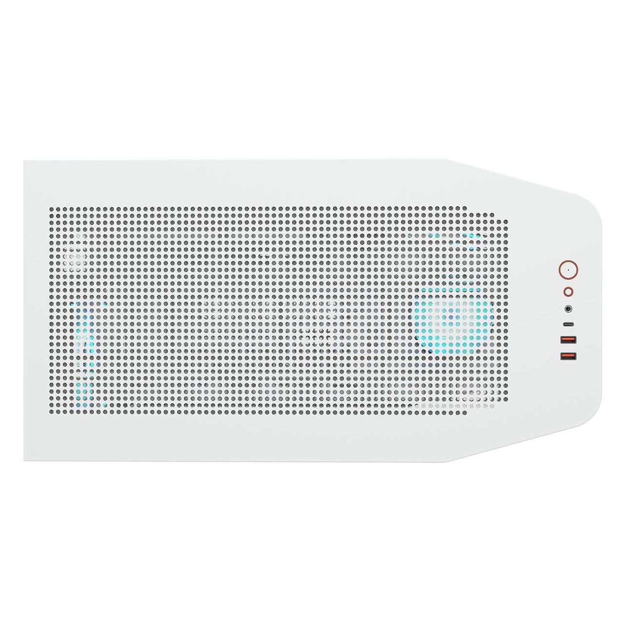 Das polyedrische Design des FV270 bringt Form und Funktion in Einklang und setzt neue Standards für die Luftstromdynamik. Die Platzierung der Kühllüfter auf schrägen Flächen sorgt für einen ununterbrochenen, fokussierten Luftstrom. Die erhöhte Vorderseite bietet eine zusätzliche Belüftungsachse, die den Lufteinlass von unten ermöglicht.