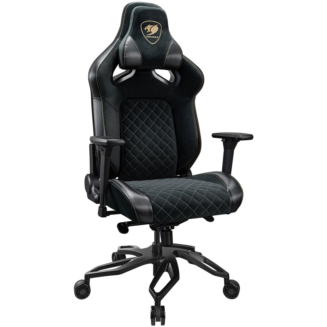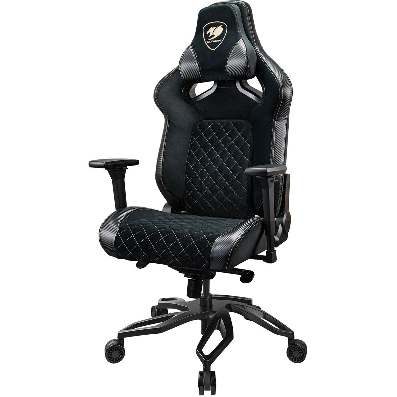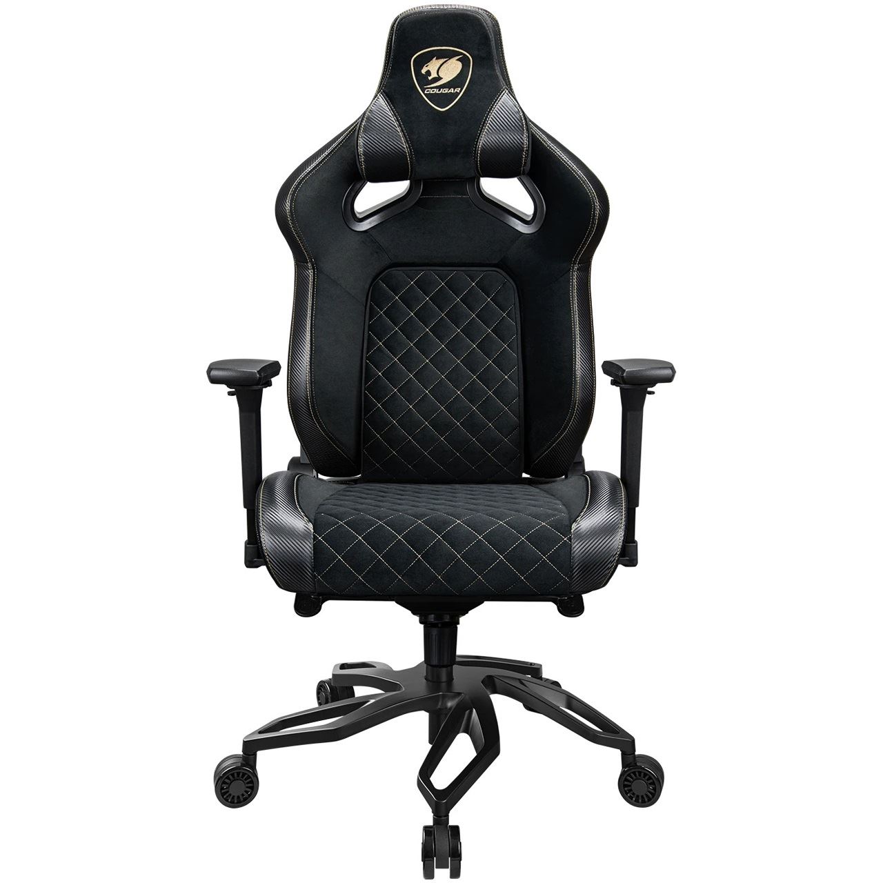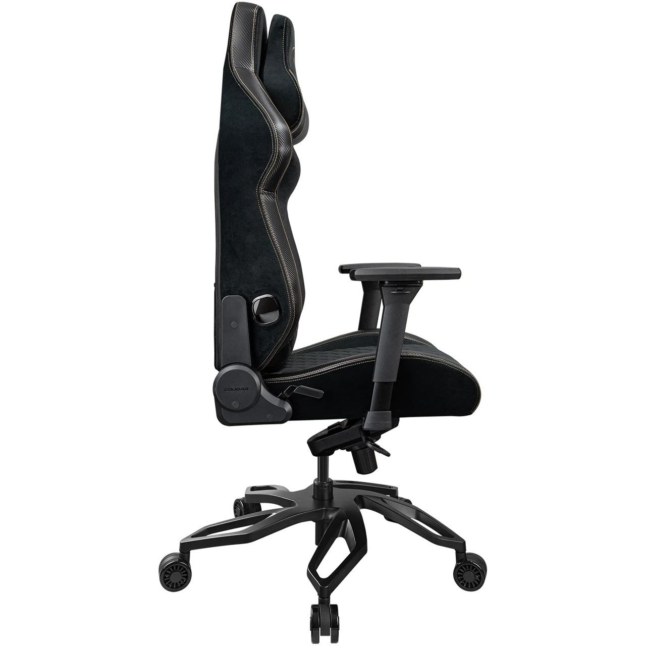 COUGAR Gaming-Stuhl Titan Pro V2 Gold F, Schwarz. Produkttyp: Universal-Gamingstuhl, Maximales Nutzergewicht: 160 kg, Sitztyp: Gepolsterter, ausgestopfter Sitz. Breite: 780 mm, Höhe (min): 136 cm, Höhe (max): 144 cm. Verpackungsbreite: 890 mm, Verpackungstiefe: 690 mm, Verpackungshöhe: 380 mm