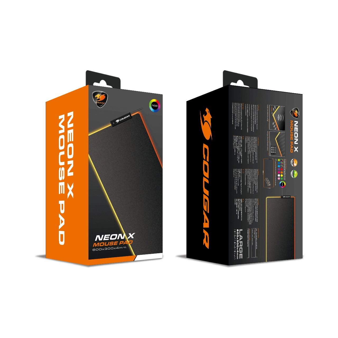 COUGAR Gaming Mauspad NEON X, ARGB, 800x300. Breite: 300 mm, Tiefe: 800 mm. Produktfarbe: Schwarz, Oberflächenfärbung: Einfarbig, Material: Stoff, Gummi, Farbe der Hintergrundbeleuchtung: verschiedene, Gestickte Kanten, Anti-Rutsch-Basis, Gaming-Mauspad
