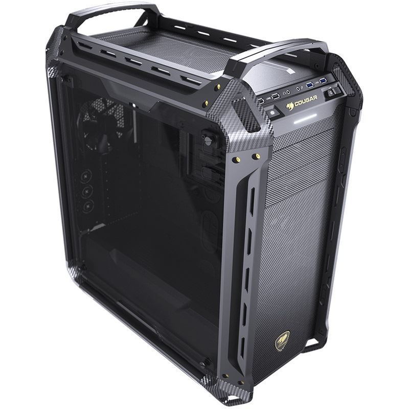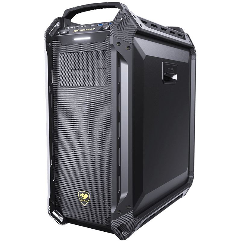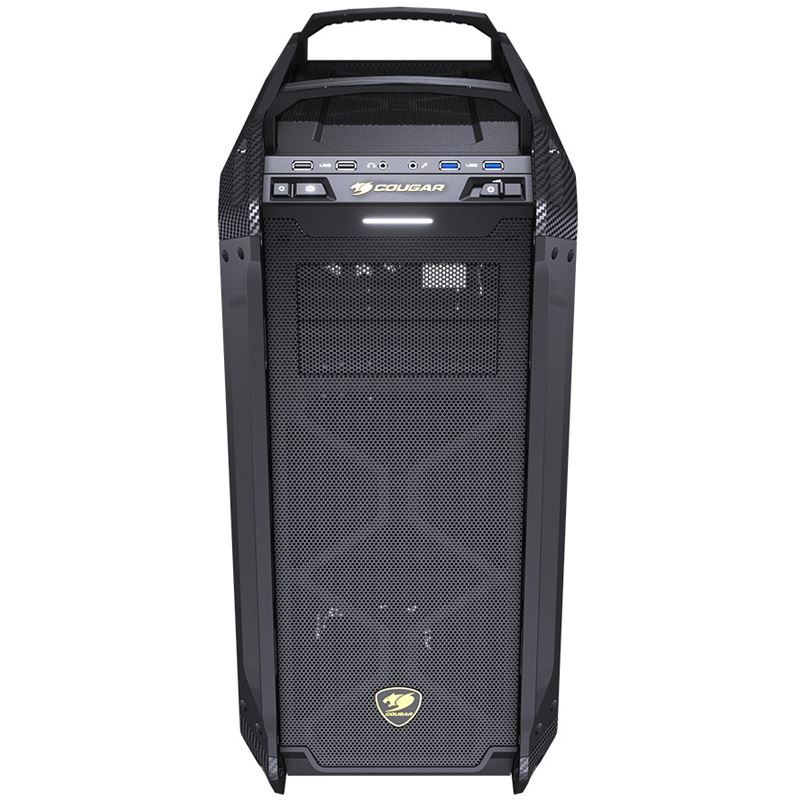 COUGAR Gehäuse Full-Tower, Panzer Max-G, Schwarz. Formfaktor: Full Tower, Typ: PC, Produktfarbe: Schwarz. Durchmesser unterstützte Vorderseitenlüfter: 120,140 mm, Installierte Lüfter hinten: 1x 120 mm, Durchmesser unterstützter Rückseitenlüfter: 120 mm. Unterstützte Hard-Disk Drive Größen: 2.5,3.5". Breite: 266 mm, Tiefe: 556 mm, Höhe: 612 mm. Verpackungsbreite: 380 mm, Verpackungstiefe: 668 mm, Verpackungshöhe: 668 mm