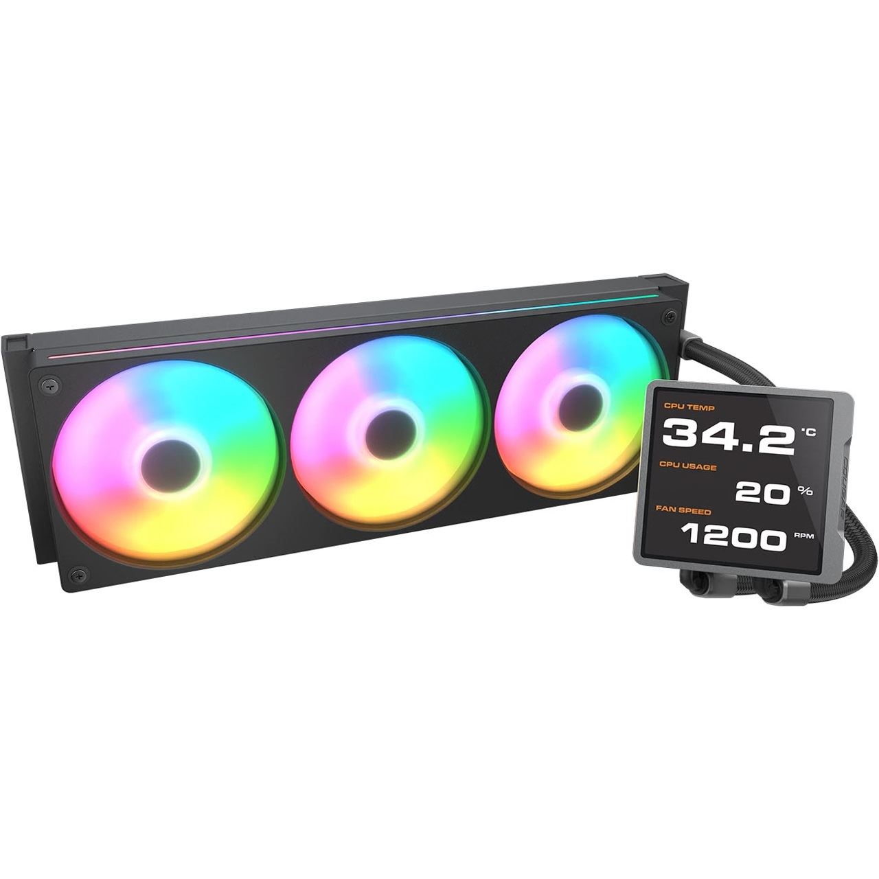 COUGAR CPU Wasserkühlung Poseidon Vistek Pro 360, ARGB, Schwarz. Typ: All-in-One-Flüssigkeitskühler, Lüfterdurchmesser: 12 cm, Rotationsgeschwindigkeit (min.): 700 RPM, Rotationsgeschwindigkeit (max.): 2500 RPM, Maximum Luftdruck: 5,4 mmH2O. Produktfarbe: Schwarz