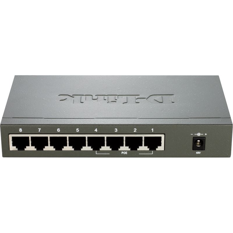 Der DES-1008P ermöglicht eine kostengünstige Anbindung von Desktop-PCs. Darüber hinaus werden Power-over-Ethernet Endgeräte, wie WLAN Access Points, Kameras und VoIP-Telefone, mit Strom und Daten gleichzeitig versorgt. Der DES-1008P arbeitet mit allen zum Industriestandard IEEE 802.3af PoE kompatiblen Geräten und liefert über ein gewöhnliches Kat. 5 Netzwerkkabel bis zu 15,4W pro Port.