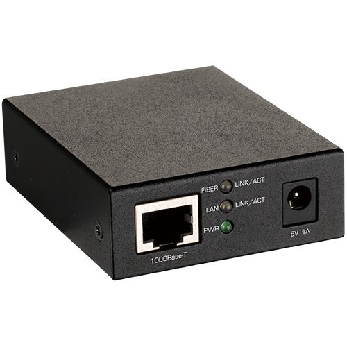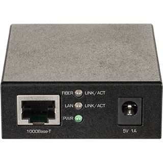 Gigabit Ethernet SFP Konverter, 10/100/1000 Mbit/s TP (RJ-45) zu 100/1000 Mbit/s SFP Slot, FDX, max. Entfernung des optionalen Transceivers, externes EURO-Steckernetzteil, 5VDC/1A, Effizienzklasse VI