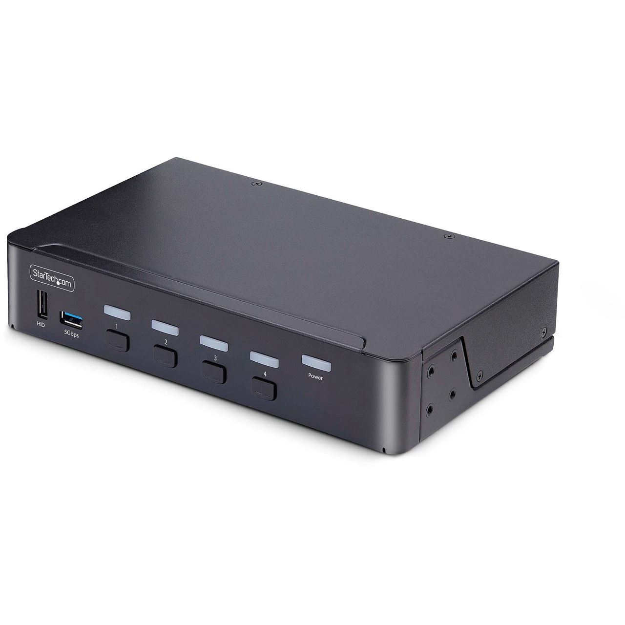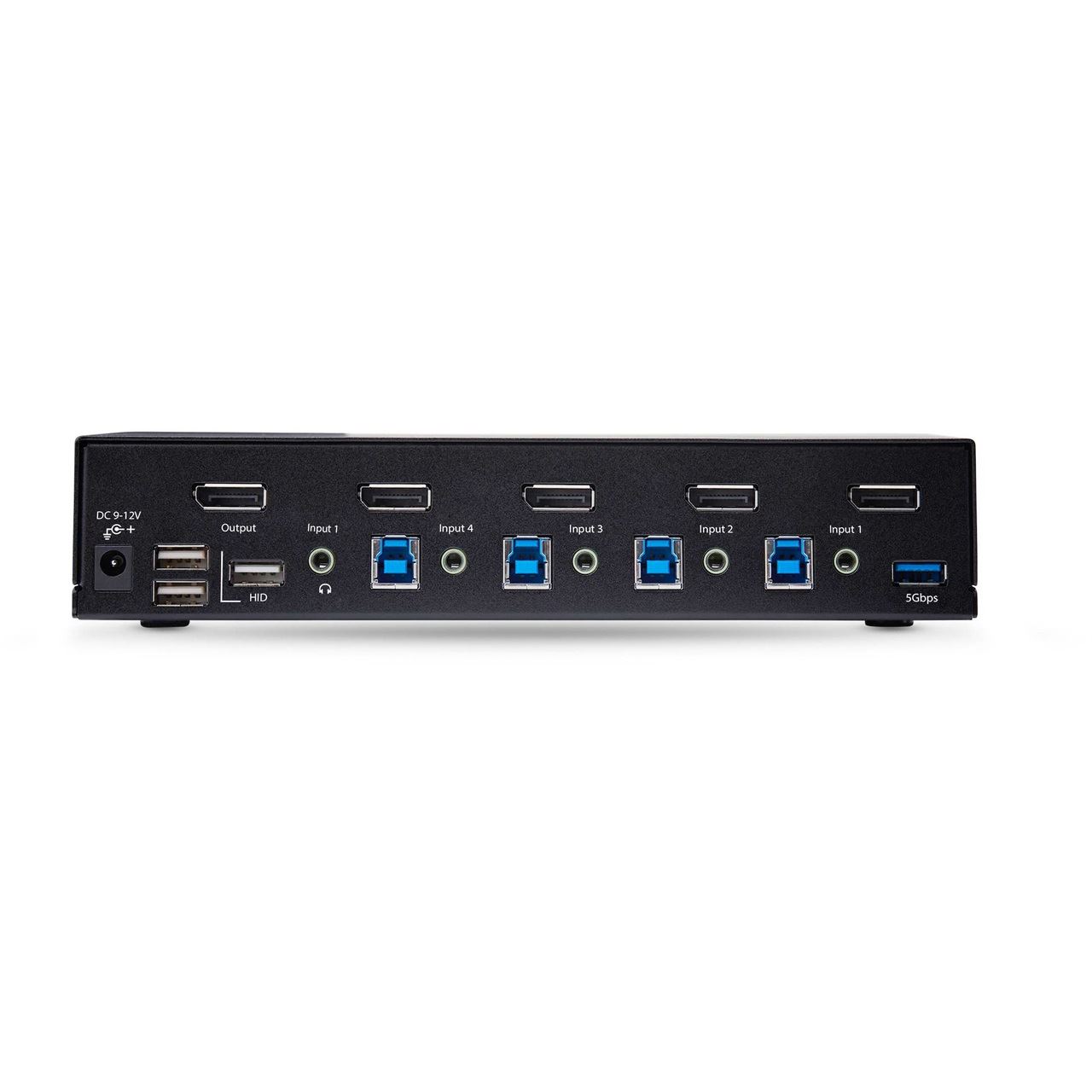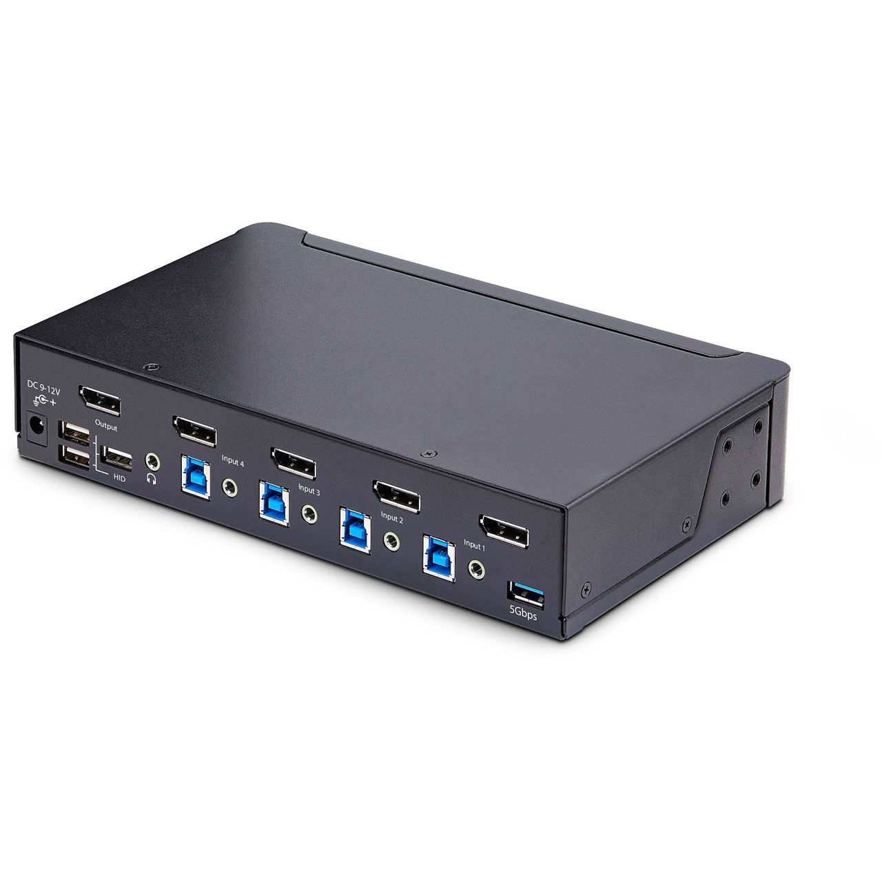 Teilen und schalten Sie zwischen vier USB-A und DisplayPort-fähigen Computern um, indem Sie diesen DisplayPort KVM-Switch benutzen. Teilen Sie einen 8K 60Hz DisplayPort-Bildschirm, eine Tastatur und Maus, zwei USB 5Gbps Geräte und zwei zusätzliche USB 2.0 Geräte.