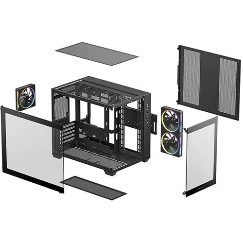 Sorgen Sie für einen sauberen Systemaufbau – mit einem Zweikammer-Design, durch das Strom- und Speicherkomponenten vom Hauptluftstrom getrennt werden. Das verbessert die Kühleffizienz und nutzt den Innenraum optimal aus.