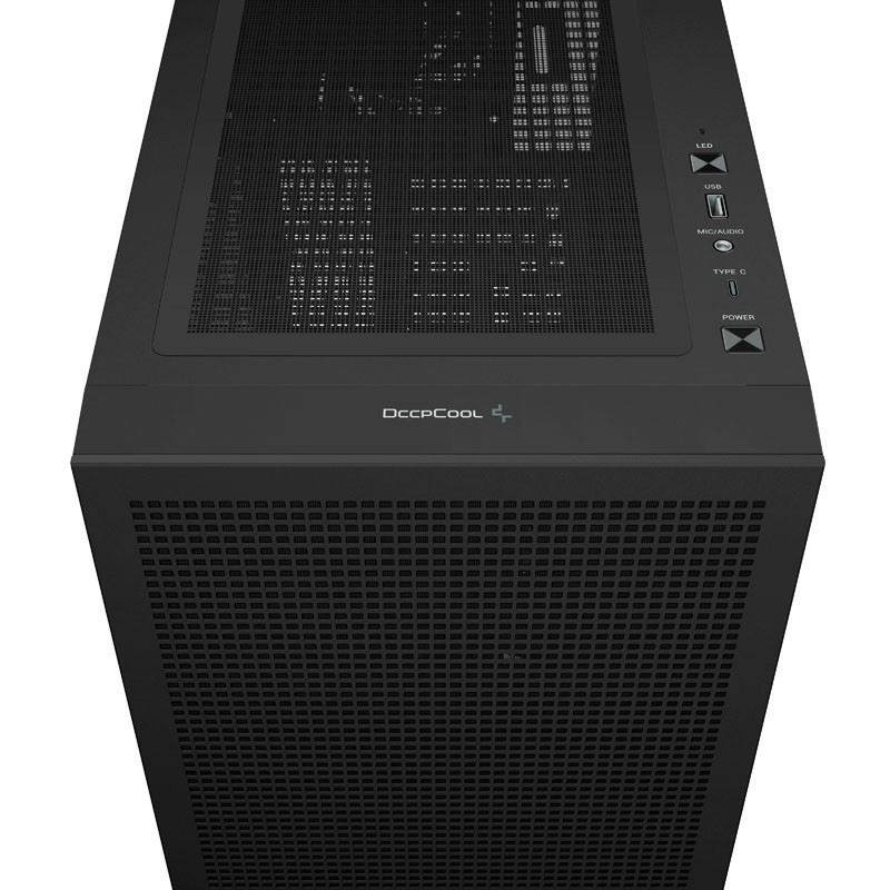 DeepCool CH560 DIGITAL. Formfaktor: Midi Tower, Typ: PC, Produktfarbe: Schwarz. Platzierung der Stromversorgung: Boden, Unterstützte Stromversorgungs-Formfaktoren: ATX, PS2. Installierte Lüfter (Vorderseite): 3x 140 mm, Durchmesser unterstützte Vorderseitenlüfter: 120,140 mm, Installierte Lüfter hinten: 1x 120 mm. Unterstützte Hard-Disk Drive Größen: 2.5,3.5". Breite: 230 mm, Tiefe: 458 mm, Höhe: 471 mm