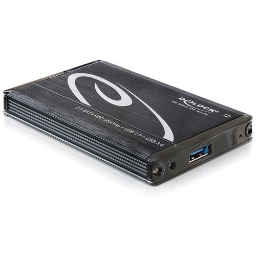 Dieses Aluminium-Gehäuse von Delock dient zum Einbau einer 2.5? SATA HDD oder SSD und bietet auf-grund seiner speziellen Multiport USB 3.0 + eSATAp Schnittstelle bis zu 4 verschiedene Anschlussmög-lichkeiten, um das Gehäuse mit Ihrem Computer zu verbinden. Der Multiport ist eine Kombination aus eSATA und USB 3.0 Schnittstelle, der eine schnelle Datenübertragung sowie eine Spannungsversorgung von bis zu 5 V unterstützt. Für die Spannungsversorgung, beim Anschluss über eSATA, ist zusätzlich ein Stromkabel im Lieferumfang enthalten.