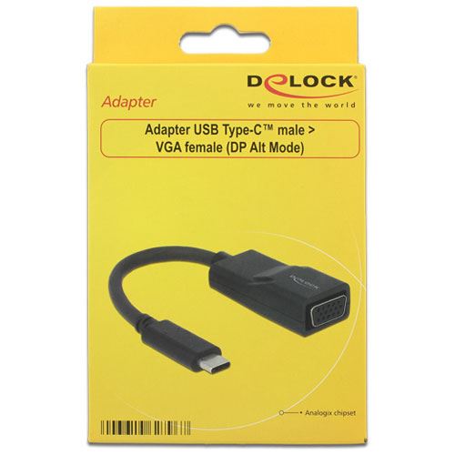 Dieser Delock Adapter ist für den Anschluss eines VGA Monitors an einen Computer mit USB-C™ Schnittstelle und Displayport Alternate Mode Unterstützung geeignet. Somit kann der Adapter an verschiedene Notebooks wie Macbook, Chromebook und ähnliche angeschlossen werden. Außerdem kann der Adapter auch an einer Thunderbolt™ 3 Schnittstelle betrieben werden.