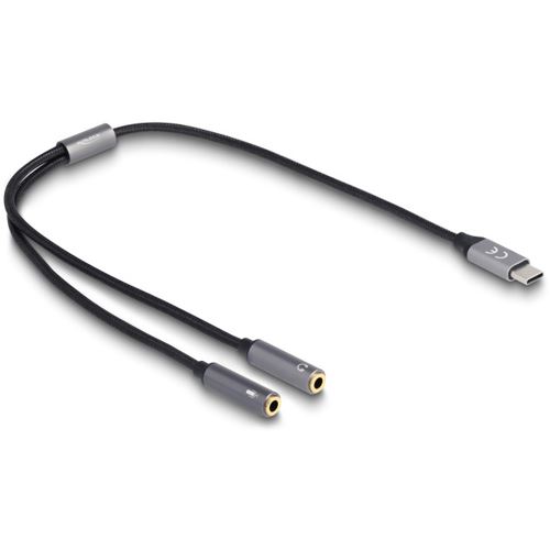 DeLOCK Headset Adapter USB Type-C Stecker DAC 24 Bit / 96 kHz Hi-Res zu 2 x 3,5 mm 3 Pin Klinkenbuchse. Produkttyp: Kabel, Produktfarbe: Anthrazit, Schwarz