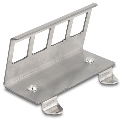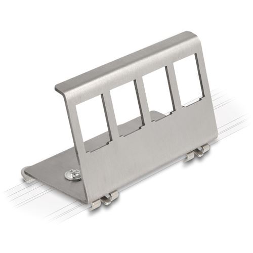 DeLOCK Keystone Metall Halterung 4 Port für Hutschiene. Produkttyp: Schelle, Material: Edelstahl, Produktfarbe: Edelstahl. Breite: 44 mm, Tiefe: 80 mm, Höhe: 37 mm. Menge pro Packung: 1 Stück(e)