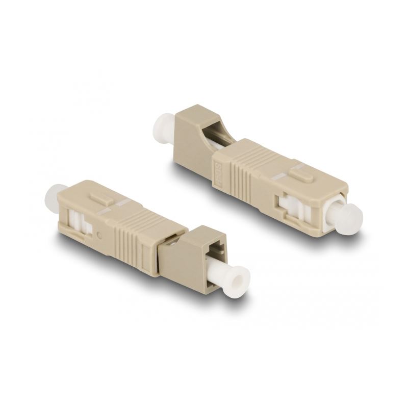 DeLOCK LWL Hybrid Kupplung SC Simplex Stecker zu LC Simplex Buchse beige. Verbindungstyp: LC/SC, Produktfarbe: Beige, Gehäusematerial: Kunststoff. Breite: 9,5 mm, Tiefe: 45,9 mm, Höhe: 8,9 mm. Menge pro Packung: 1 Stück(e), Verpackungsart: Polybag. Ursprungsland: China