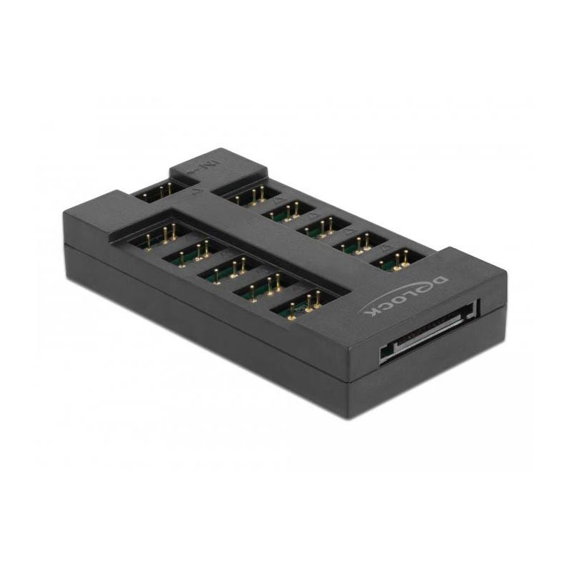 Dieser RGB Hub von Delock kann an ein Mainboard mit adressierbarem RGB 5 V Anschluss angeschlossen werden, um die interne LED Beleuchtung zu erweitern. Somit stehen an einem ARGB Anschluss bis zu 10 Ports für eine individuelle Beleuchtung zur Verfügung. Zwei Magneten an der Unterseite sorgen für eine gute Befestigungsmöglichkeit im Computergehäuse.