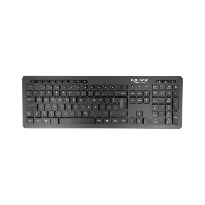 Diese kabellose USB Tastatur von Delock mit diversen Multimedia Tasten bringt Ruhe in jedes Arbeitsumfeld. Ob z. B. im Großraumbüro oder zu Hause, die Delock Tastatur sorgt mit ihren lautlosen Tasten für ein geräuschloses und angenehmes Arbeiten am Computer. Auch das Klickgefühl bleibt bei dieser Tastatur unverändert, trotz der reduzierten Klickgeräusche.