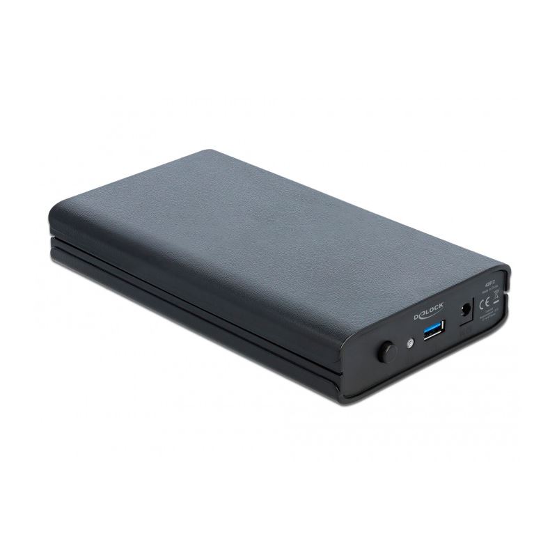 DeLOCK Externes Gehäuse für 3.5? SATA HDD mit SuperSpeed USB (USB 3.1 Gen 1). Produkttyp: HDD-Gehäuse. Anzahl der unterstützten Speicherlaufwerke: 1, Größe des Speicherlaufwerks: 3.5", Unterstützte Speicherlaufwerk-Schnittstellen: SATA. Datenübertragungsrate: 5 Gbit/s. Produktfarbe: Schwarz. USB-Stecker: USB Typ-A