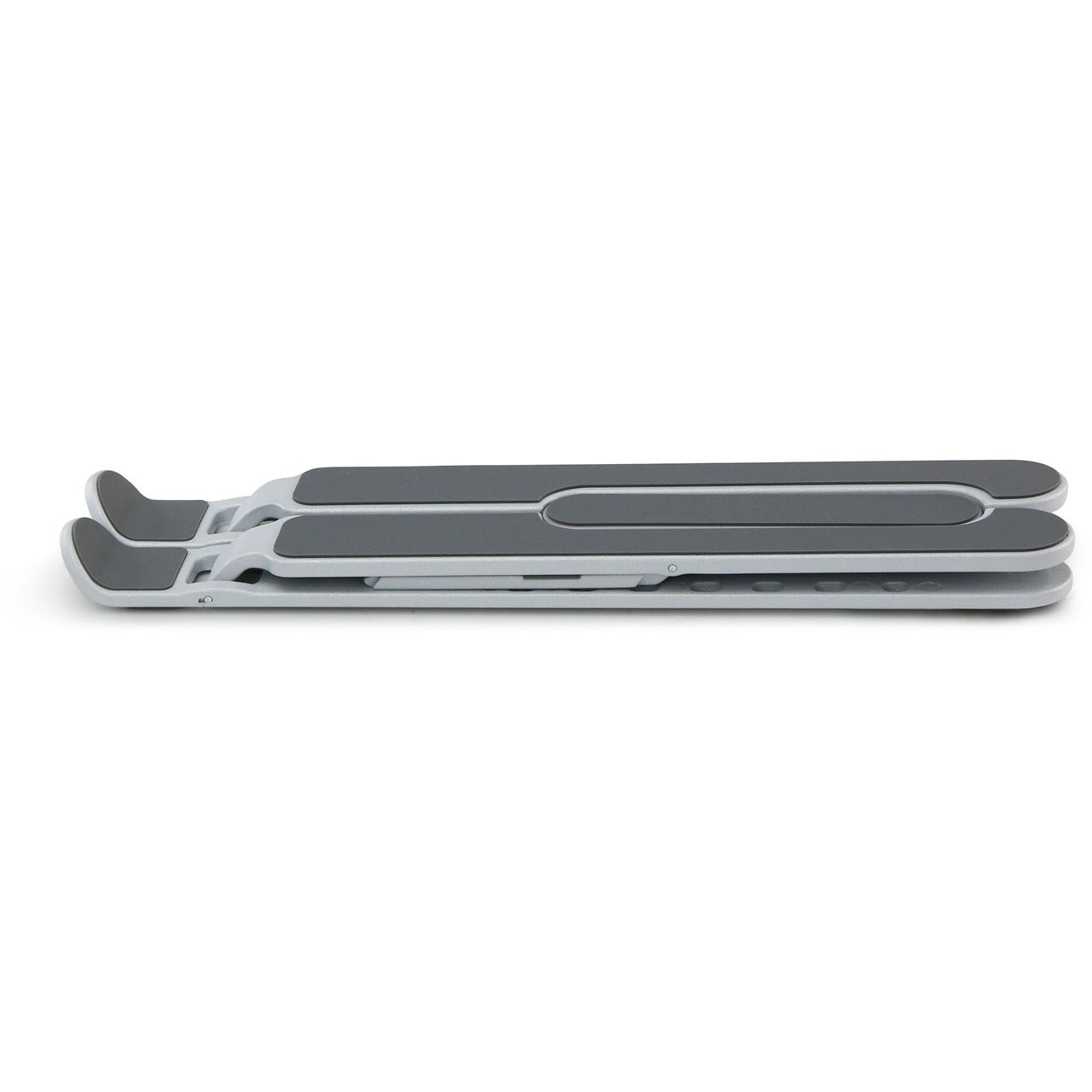 Bringen Sie ihr Gerät in die optimale Position. Der Ständer bietet sieben Stufen zur Höhenverstellung für Tablets und Laptops. Dies hilft die Körperhaltung zu korrigieren, um den ganzen Tag und überall problemlos arbeiten zu können. Der Ständer ist universell kompatibel für Geräte unterschiedlicher Hersteller und Größen. Er besteht aus hochwertigem Aluminium und verfügt über wärmereduzierende Eigenschaften, um die Überhitzung des Geräts zu verhindern. Die Silikon-Pads verhindern, dass das Gerät vom Ständer rutscht oder verkratzt wird. Der Ständer lässt sich flach zusammenfalten, leicht verstauen und transportieren.