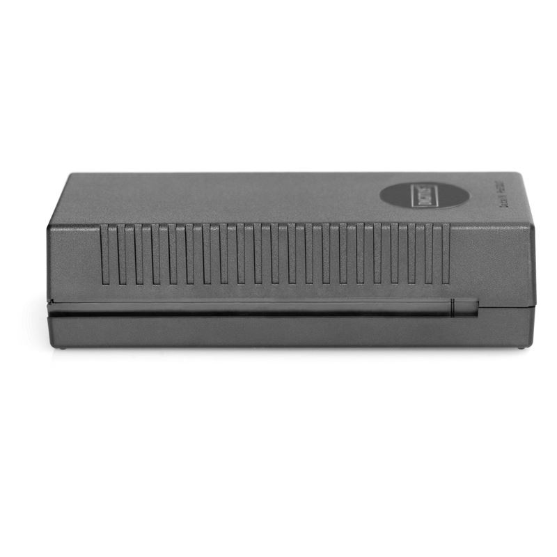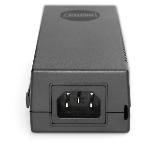Digitus 10 Gigabit Ethernet PoE+ Injektor, 802.3at, 30 W. Ethernet Schnittstellen Typ: 10 Gigabit Ethernet, Ethernet LAN Datentransferraten: 10,100,1000,2500,5000,10000 Mbit/s, Netzstandard: IEEE 802.3at. Produktfarbe: Schwarz, Maximaler Arbeitsabstand: 100 m, LED-Anzeigen: PoE, Leistung. Power over Ethernet (PoE) Spannung: 52 V, Netzteil Eingansgsspannung: 100-240 V, Netzteilfrequenz: 50/60 Hz. Breite: 61,5 mm, Tiefe: 145,5 mm, Höhe: 40 mm. Anzahl enthaltener Produkte: 1 Stück(e)