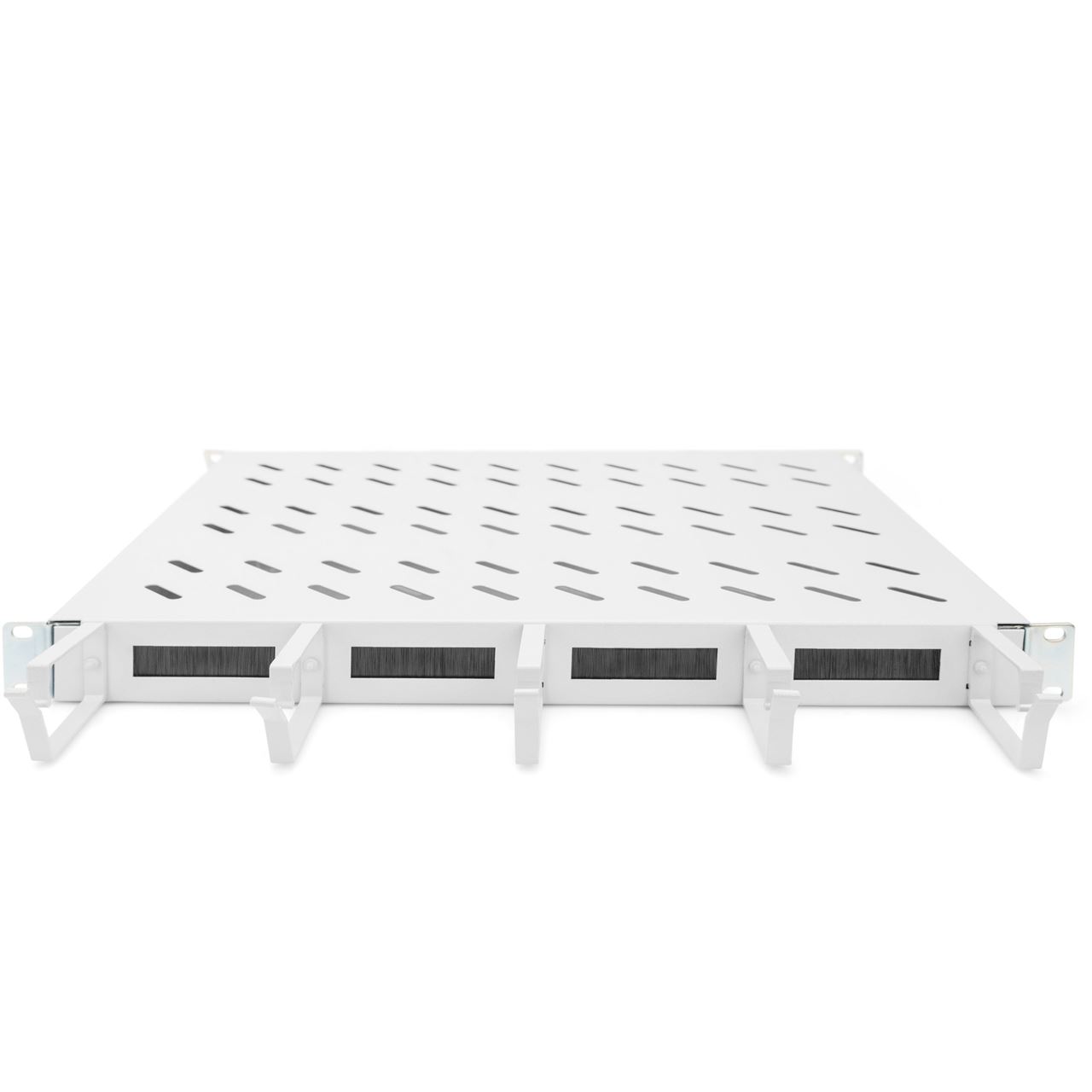 Die Fachböden zum Festeinbau lassen sich einfach an den vier 483 mm (19“)-Profilschienen Ihres 483 mm (19“) Netzwerk- oder Serverschrankes installieren. Durch das stabile, perforierte Lochblech mit einer Traglast von bis zu 120 kg, sind sie die optimale Tragfläche für nicht 483 mm (19“) einbaufähige Komponenten. Die Kombination mit integrierten, frontseitigen Kabelführungsbügeln sowie -durchlässen ermöglicht ein optimiertes Kabelmanagement-Konzept bei verschiedensten Anwendungsszenarien.