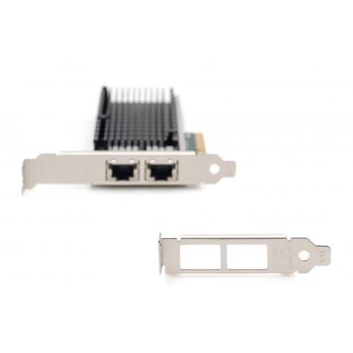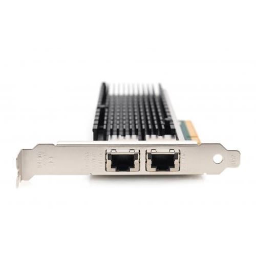 Digitus 2-Port 10 Gigabit Ethernet Netzwerkkarte, RJ45, PCI Express, Intel Chipsatz. Eingebaut. Übertragungstechnik: Kabelgebunden, Hostschnittstelle: PCI Express, Schnittstelle: Ethernet. Maximale Datenübertragungsrate: 10000 Mbit/s. Produktfarbe: Grün, Silber